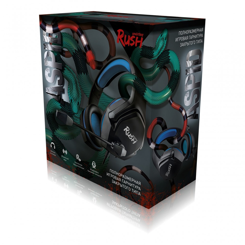 Гарнитура Smartbuy SBHG-9730 RUSH ASPID, черн/син, игровая, динамики 40мм, переходник для ПК