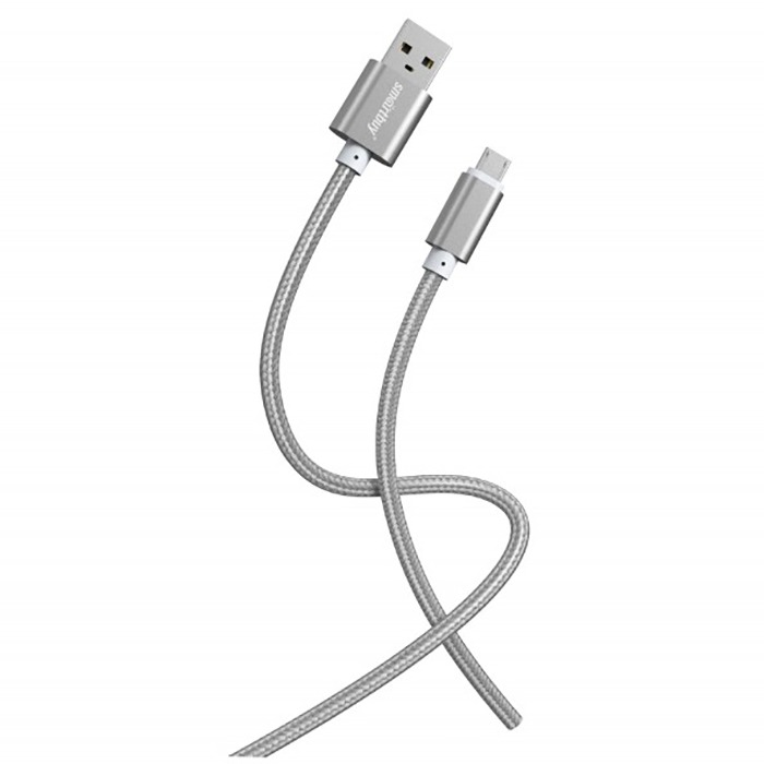 Кабель для зарядки и передачи данных S02 MicroUSB серый, 3 А, 1 м, Smartbuy (iK-12-S02dg)