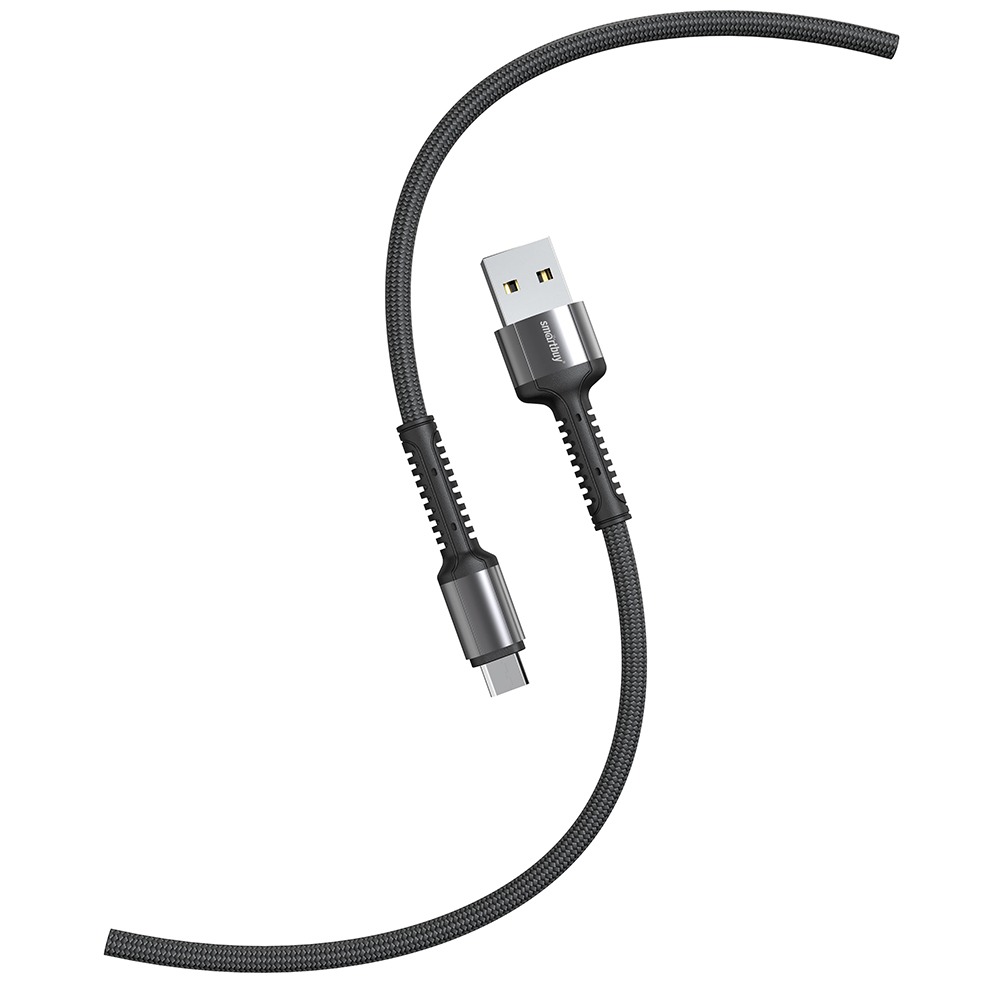 Кабель для зарядки и передачи данных S26 Type C черн./сер.,3 А,QC,нейл.,1 м,Smartbuy (iK-3112-S26bg)