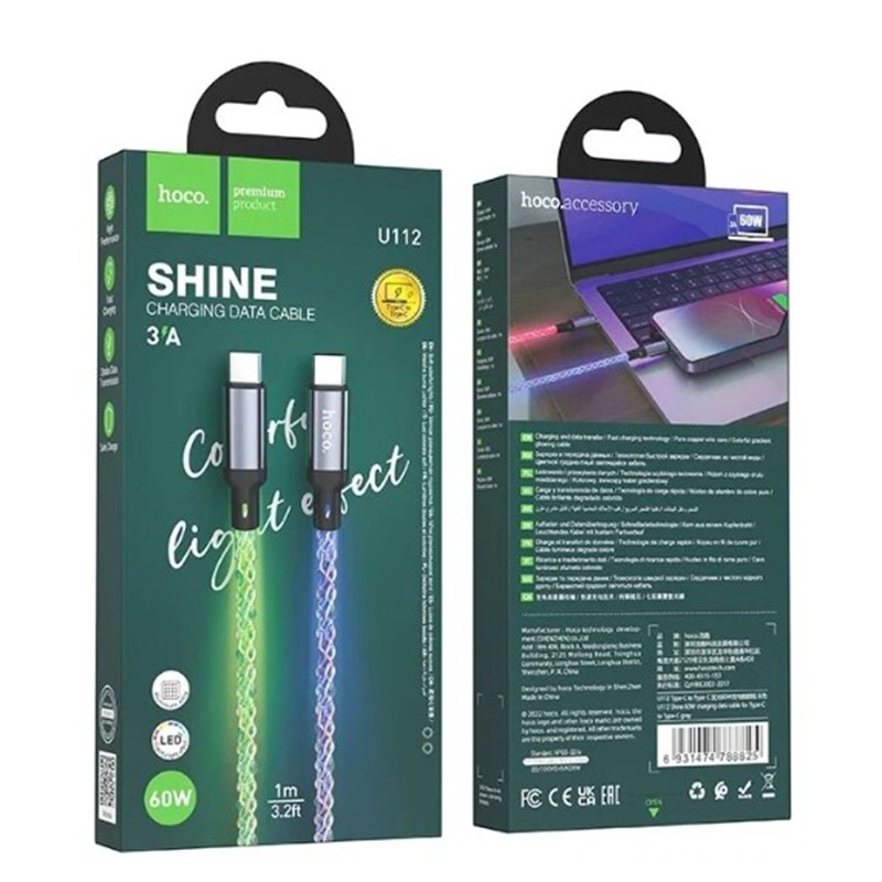 Кабель Type-C - Type-C Hoco U112 60W 1м серый