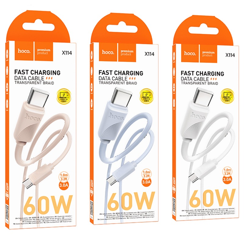 Кабель Type-C - Type-C HOCO X114 Energy, 1.0м, круглый, PD60Вт, ПВХ, цвет: розовый (1/31/310)