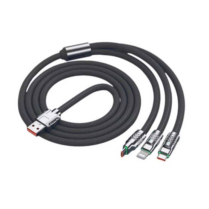 Кабель USB - 3 в 1 (Lightning + MicroUSB + Type-C) 6A, 1 м Черный