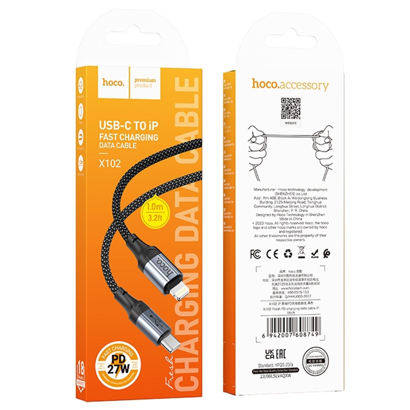 Кабель USB-C Hoco X102 Apple PD черный 1м