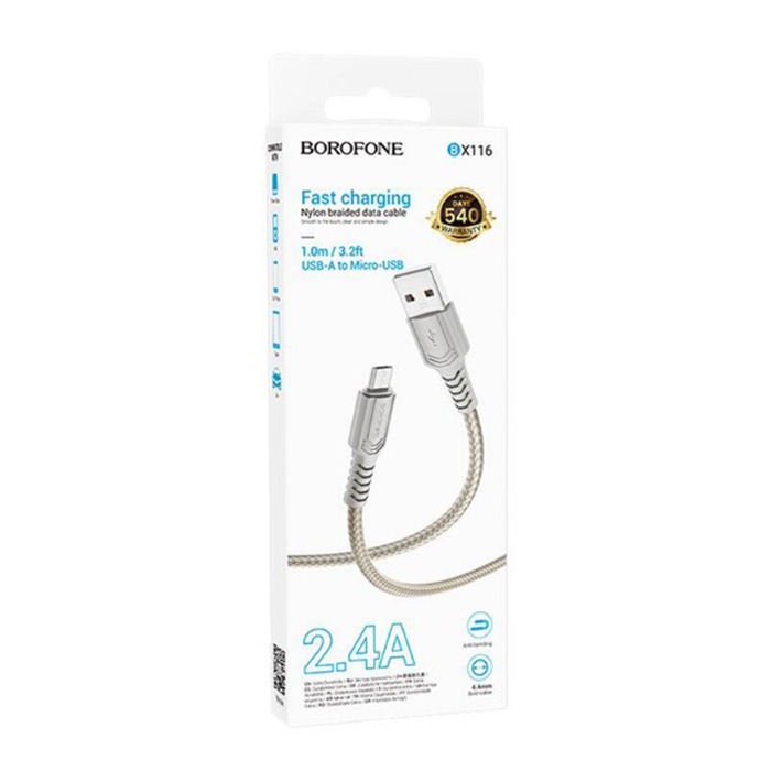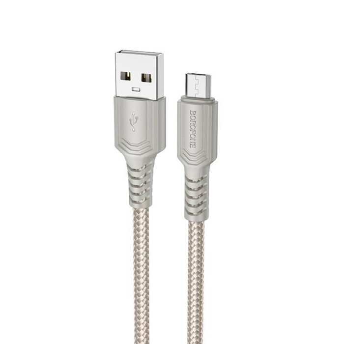 Кабель USB - микро USB Borofone BX116 Certain, 1.0м, 2.4A, ткань, цвет: серый (1/360)