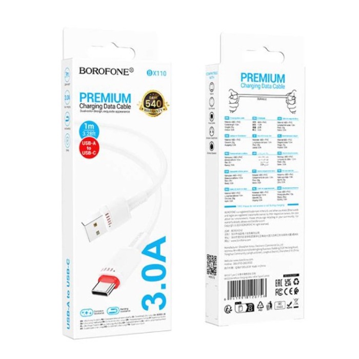 Кабель USB - Type-C BOROFONE BX110 (3A/1m) белый