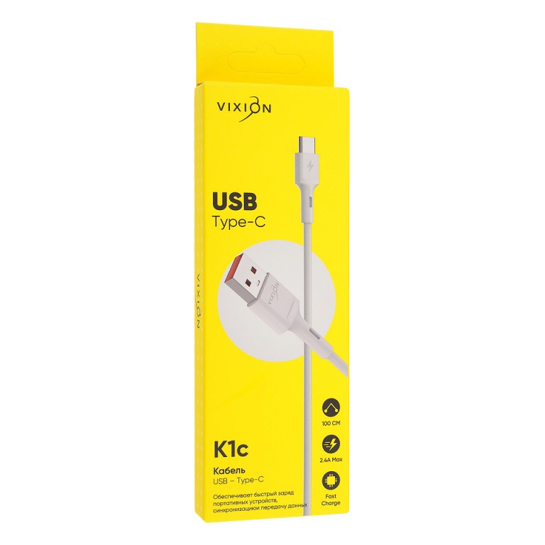 Кабель USB VIXION (K1c) Type-C (1м) (белый)