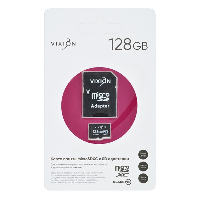 Карта памяти MicroSD 128GB VIXION Class 10 с SD адаптером