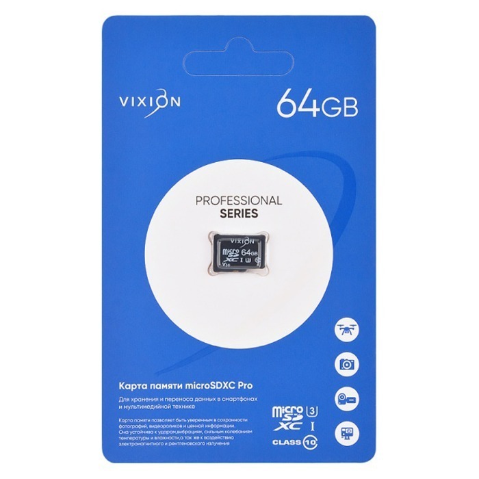 Карта памяти MicroSDXC Pro 64GB VIXION Class 10 UHS-I U3 без адаптера