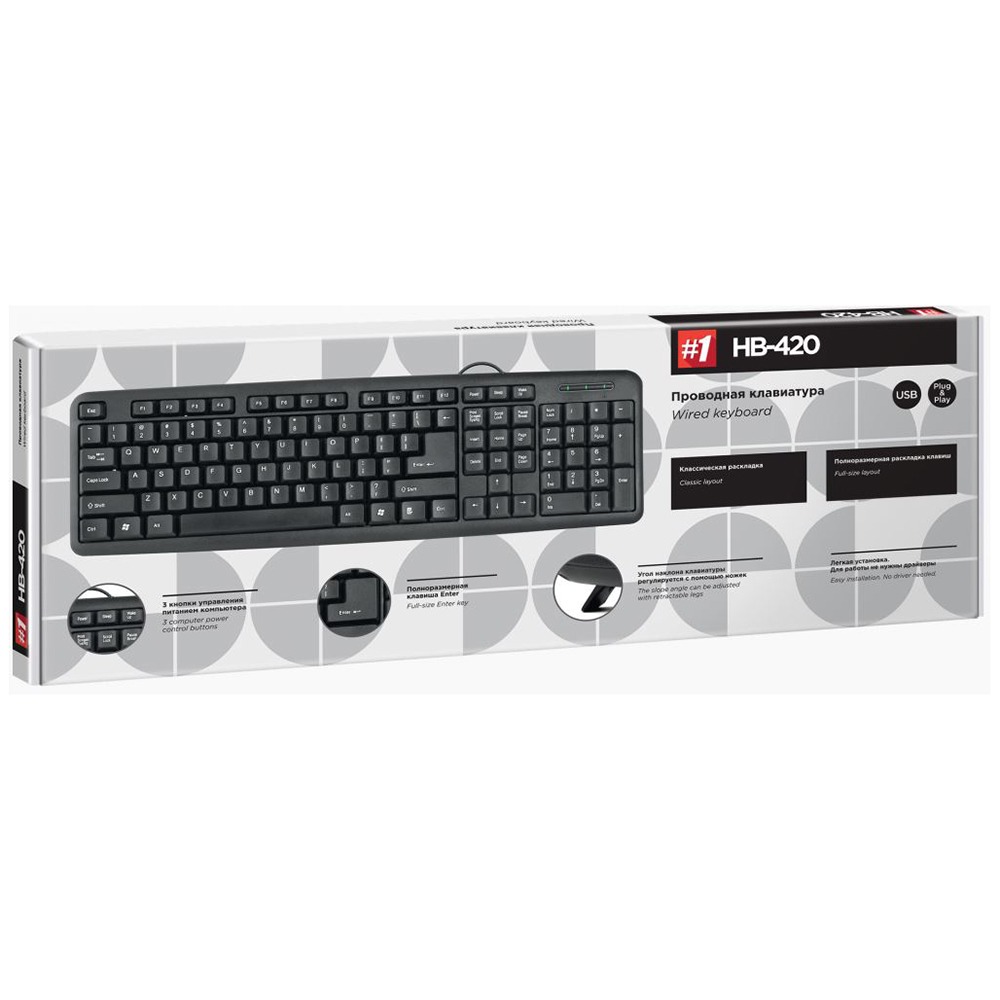 Клавиатура DEFENDER HB-420, полноразмерная, черный, USB. Количество дополнительных клавиш (функций):