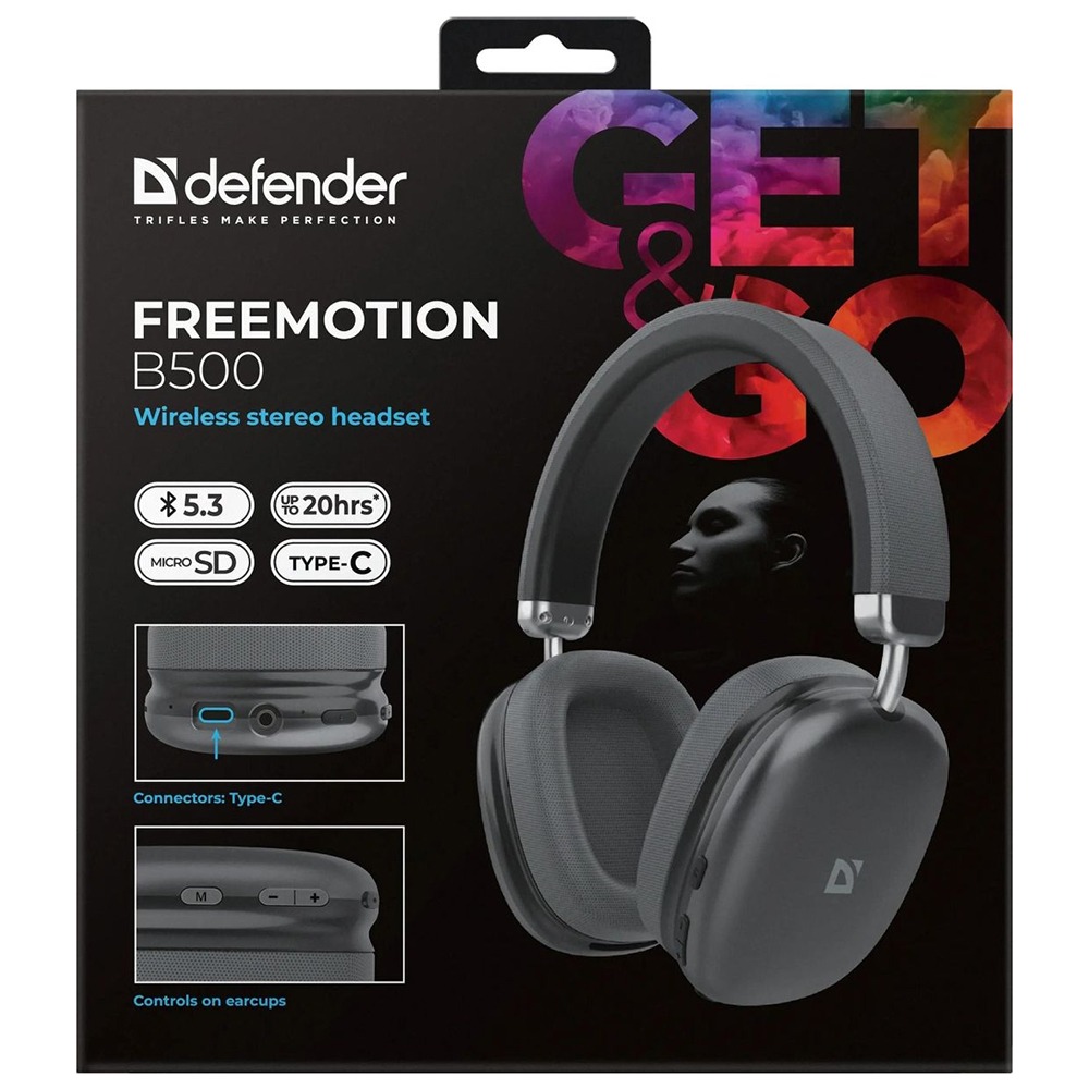 Наушники полноразмерные DEFENDER FreeMotion B500, микрофон, Bluetooth, серый (1/20)