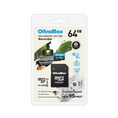 MicroSD 64GB OltraMax Class 10 Recorder UHS-I U3 V30 (95 Mb/s) + SD адаптер