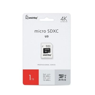 MicroSDXC 1TB Smart Buy Class 10 Pro UHS-I U3 V30 (70/90 Mb/s) + SD адаптер