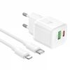 Блок питания сетевой 1 USB, 1 Type-C HOCO N65, QC3.0, PD20Вт, кабель Type-C - 8 pin, цвет: белый (1/13/130)