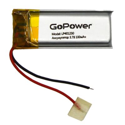 Аккумулятор Li-Pol LP401230 PK1 3.7V 100mAh (толщ.4,0мм, шир.12мм, дл.30мм) "GoPower"
