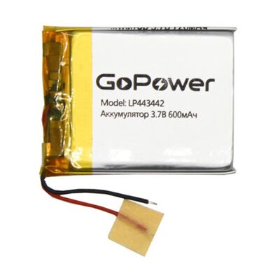 Аккумулятор Li-Pol LP443442 PK1 3.7V 600mAh (толщ.4,4мм, шир.34мм, дл.42мм) "GoPower"