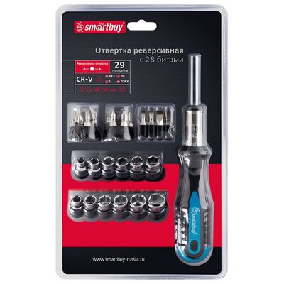 Отвертка с набором бит (насадок) 31 предмет, отвертка, 30 бит, CR-V, Smartbuy One Tools/40