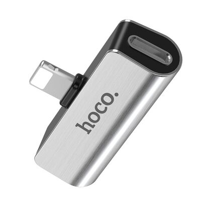 Разветвитель Hoco LS25 Apple, (наушники 3,5мм+зарядка) серебристый