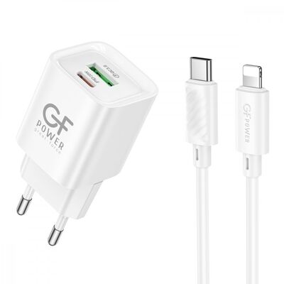 Сетевое З/У GFPower S75PQ-TL 1USB+1Type-C 30W QC3.0 с кабелем Type-C-Lightning белый (1/30/180)