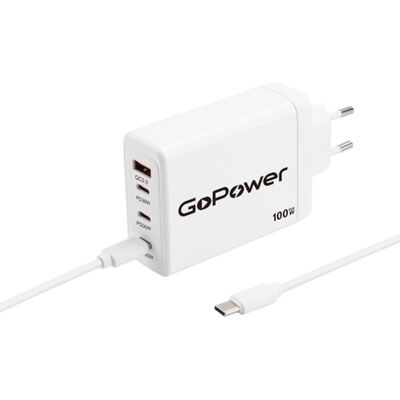 Сетевое З/У GoPower GPQC100 1USB+3Type-C 100W с кабелем Type-C/Type-C белый