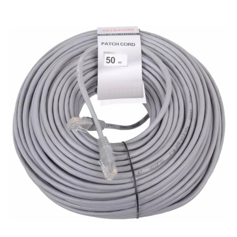 Патч-корд литой TELECOM UTP Кат. 5е, серый, 50 м. (1/17)