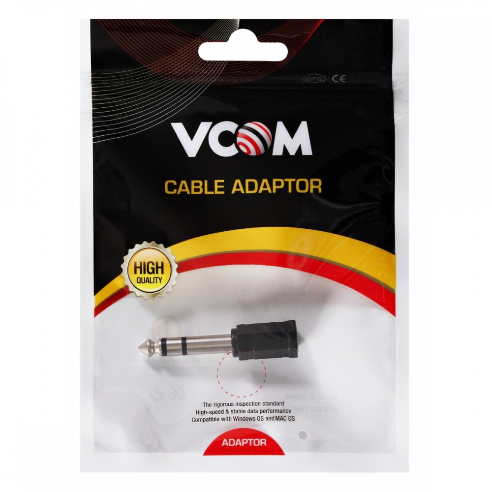 Переходник аудио стерео 6.35мм M (штекер) --> 3.5мм F (гнездо) VCOM (1/500)