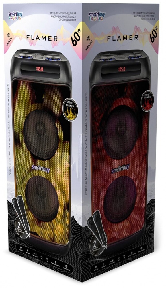 Портативная колонка 2.1 Smartbuy FLAMER (Bluetooth/USB/FT/AUX/2 микроф/60Вт) 270x620x260 черный