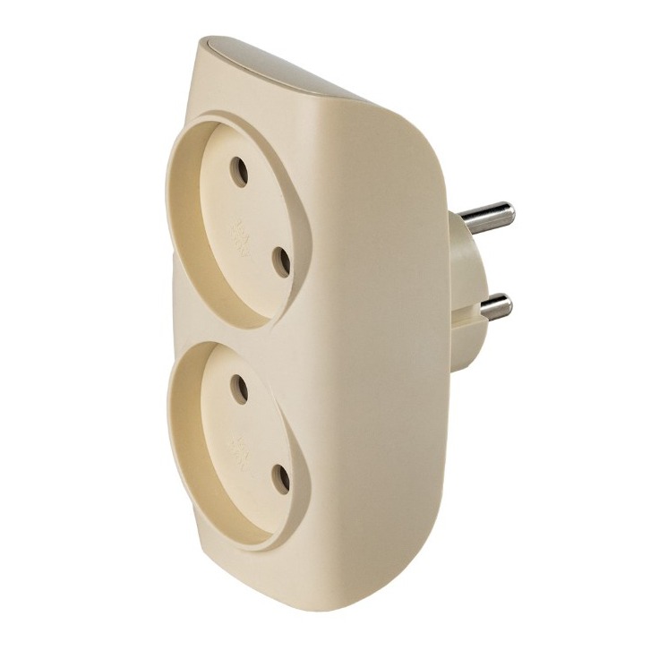 Разветвитель сетевой Тройник , 2 гнезда без заземления 10А 250B, бежевый (SBE-10-A04i-2)