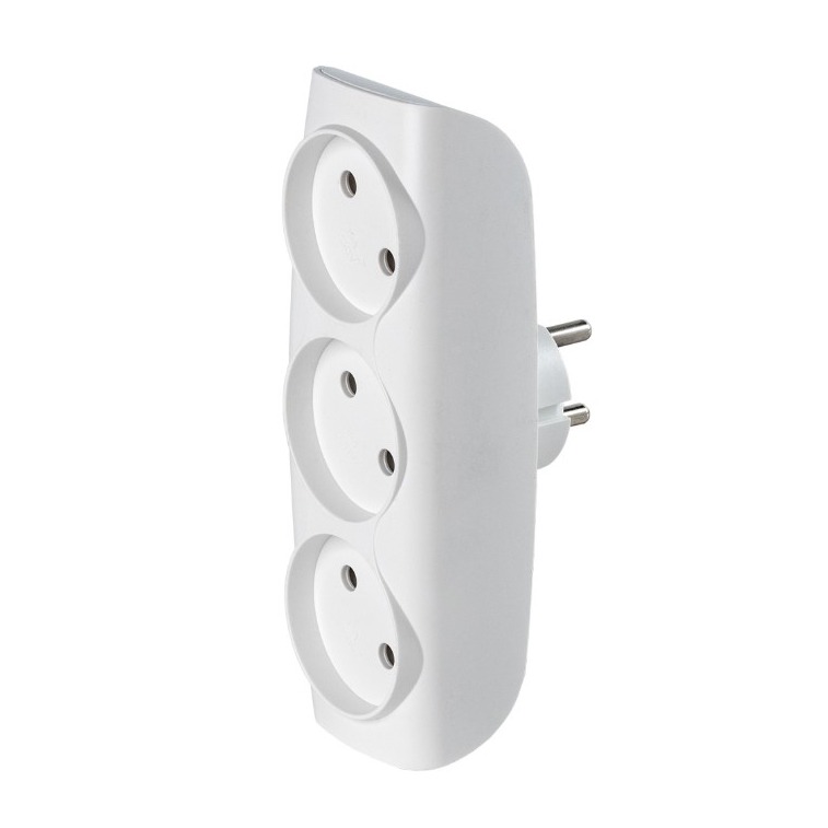 Разветвитель сетевой Тройник , 3 гнезда без заземления 10А 250B, белый (SBE-10-A04w-3)