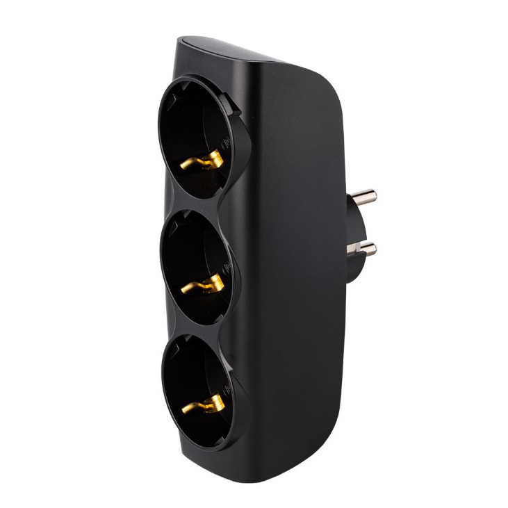 Разветвитель сетевой Тройник , 3 гнезда с заземлением 16А 250B, черный (SBE-16-A04b-3z)