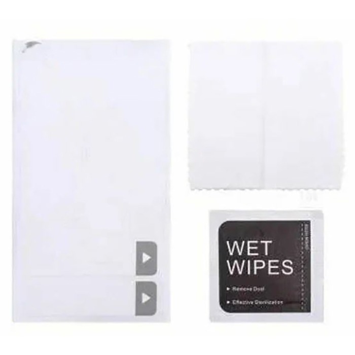 Салфетки для наклейки защитных стекол (влажная+сухая микрофибра 8*8 см+стикеры)