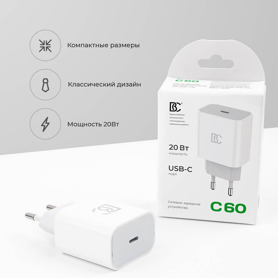 Сетевое зарядное устройство Type-C BC C60 (20W, PD) Белый