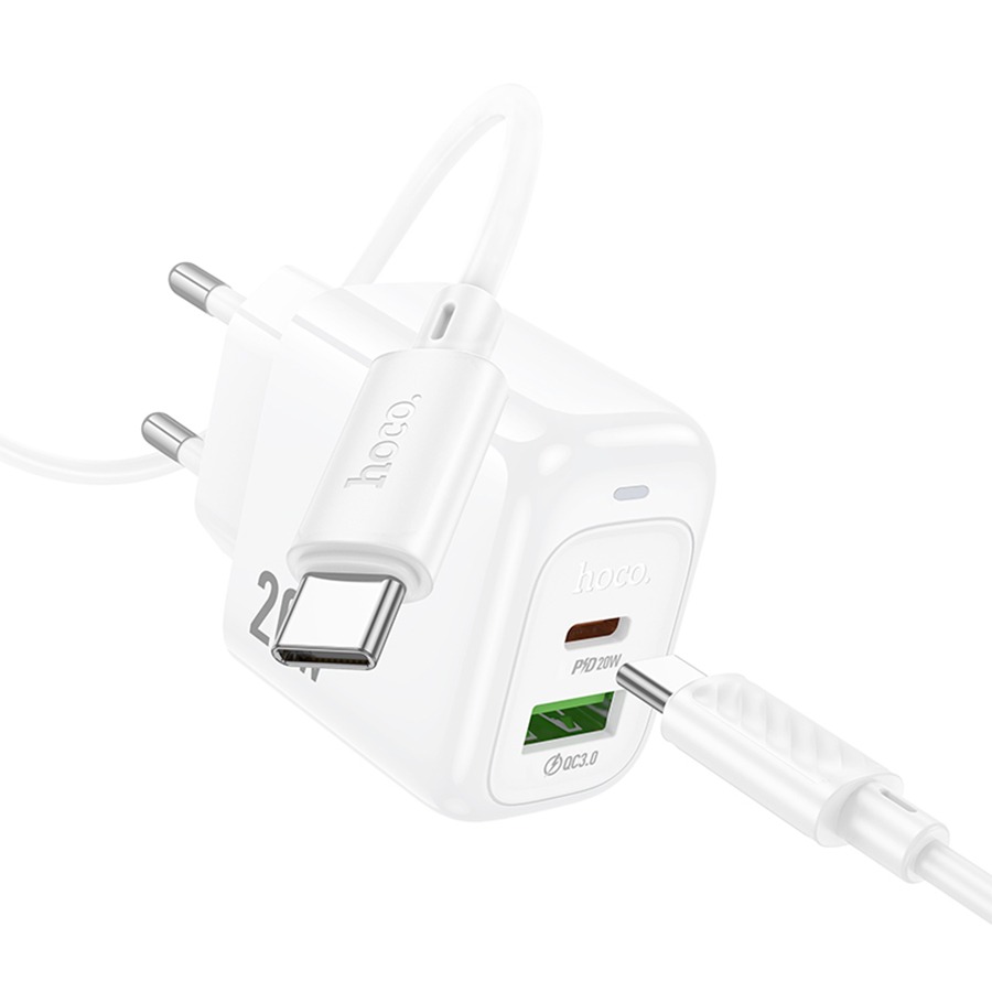 Сетевое ЗУ HOCO CS54A + кабель Type-C/Type-C (1USB/PD/QC 3.0/20W) белое