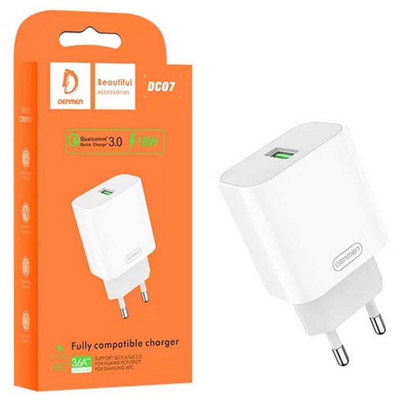 Сетевой адаптер питания DENMEN DC07 1USB QC 3.0 (белый)