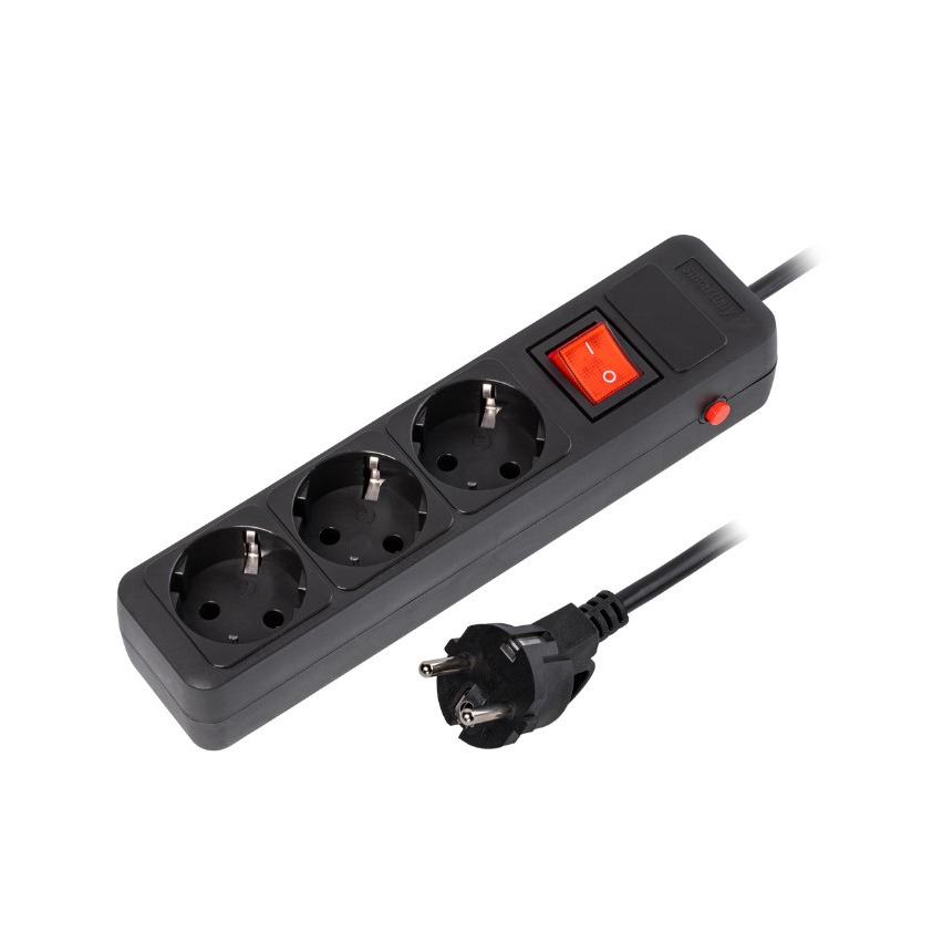 Сетевой фильтр 16А, 3500 Вт, 3 гнезда, без з/ш, с з/к, ПВС, 1,8 м, черный (SBSP-3-18-K)