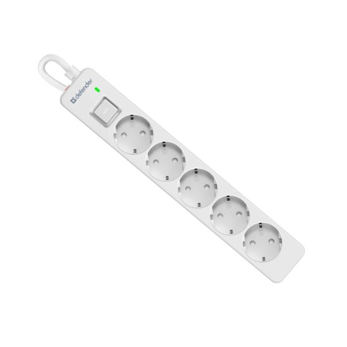 Сетевой фильтр DEFENDER DFS135, 5 розеток, ПВС 3*1,5 мм2, мощность 3680 Вт, ток 16А, защ. шторки, белый, 5,0 м (1/20)