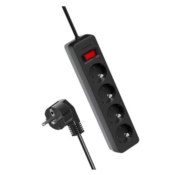 Сетевой фильтр Космос 4р.С/З 10A 1.5м ПВС 3x0.75мм² с выкл. черный (1/20)