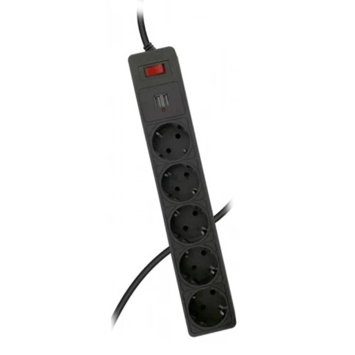Сетевой фильтр Космос 5р.С/З 10A 5.0м ПВС 3x0.75мм² черный (1/20)