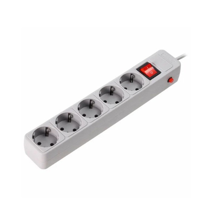 Сетевой фильтр SMARTBUY 16А, 3500 Вт, 5 гнезд, с з/ш, земля, ПВС 3x1.0 мм², 3,0 м, серый (1/45)