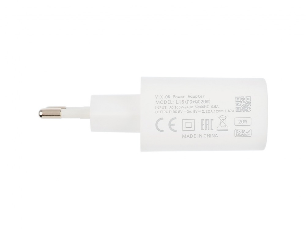 СЗУ VIXION L16 (1-USB 3A/1-Type-C Power Delivery) 20W (белый)