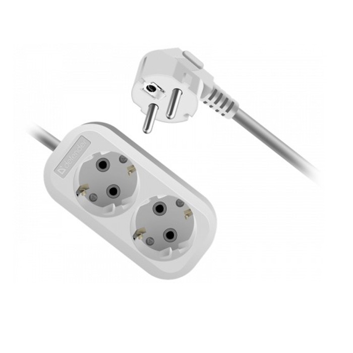 Удлинитель DEFENDER R320 2 гнезда, 2 метра, 16А/3500Вт, с заземлением, ПВС 3х1,0мм, белый (1/40)