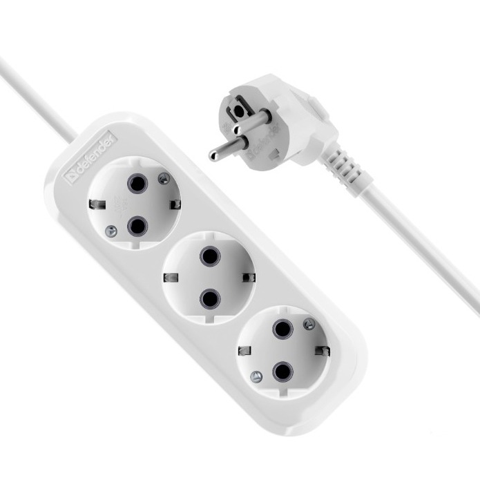 Удлинитель DEFENDER R330 3 гнезда, 2 метра, 16А/3500Вт, с заземлением, ПВС 3х1,0мм, белый (1/40)