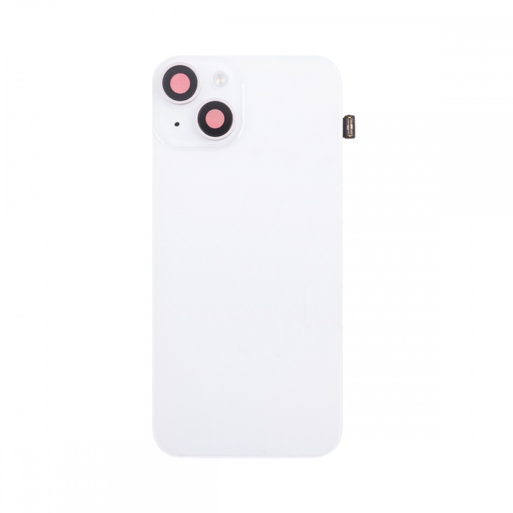 Задняя крышка для iPhone 14 (A2883) в сборе со стеклом камеры Белый (стекло, монолит, MagSafe с оригинальным шлейфом, логотип) - Премиум
