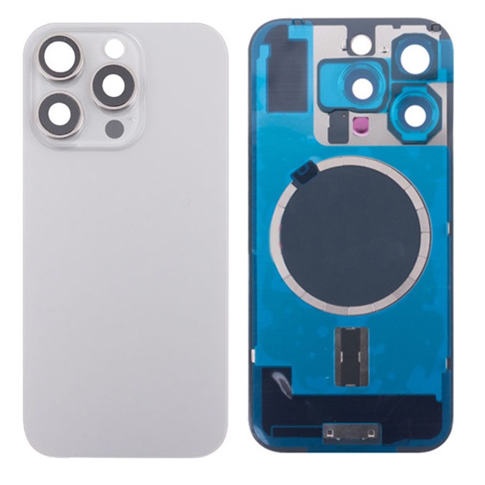Задняя крышка для iPhone 16 Pro Max (A3296) в сборе со стеклом камеры Серый (стекло, монолит, MagSafe, логотип) - Премиум