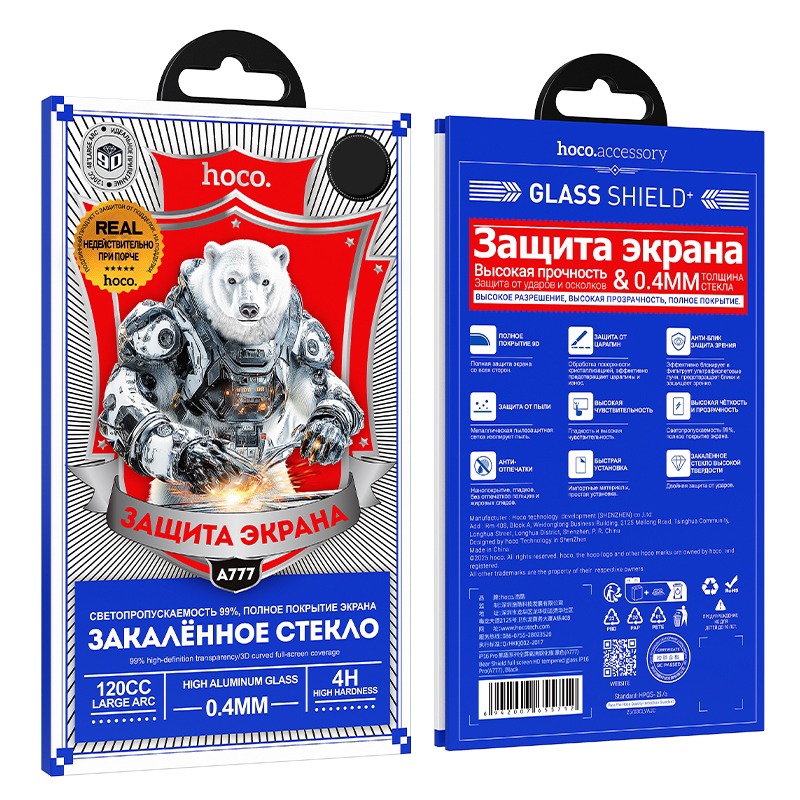 Защитное стекло Hoco A777 IPhone 15/16, ударопрочное, цвет черный