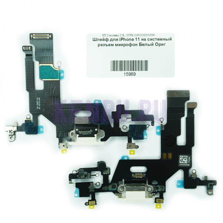 Шлейф Apple iPhone 11 Pro Max (A2218) на системный разъем + микрофон - Чёрный (Аналог)