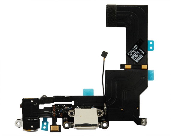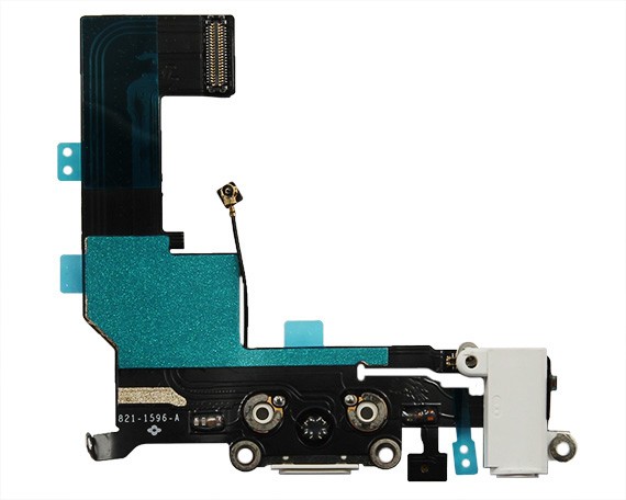 Шлейф Apple iPhone 5s (A1453) на системный разъем + микрофон + разъём гарнитуры - Белый (Аналог)
