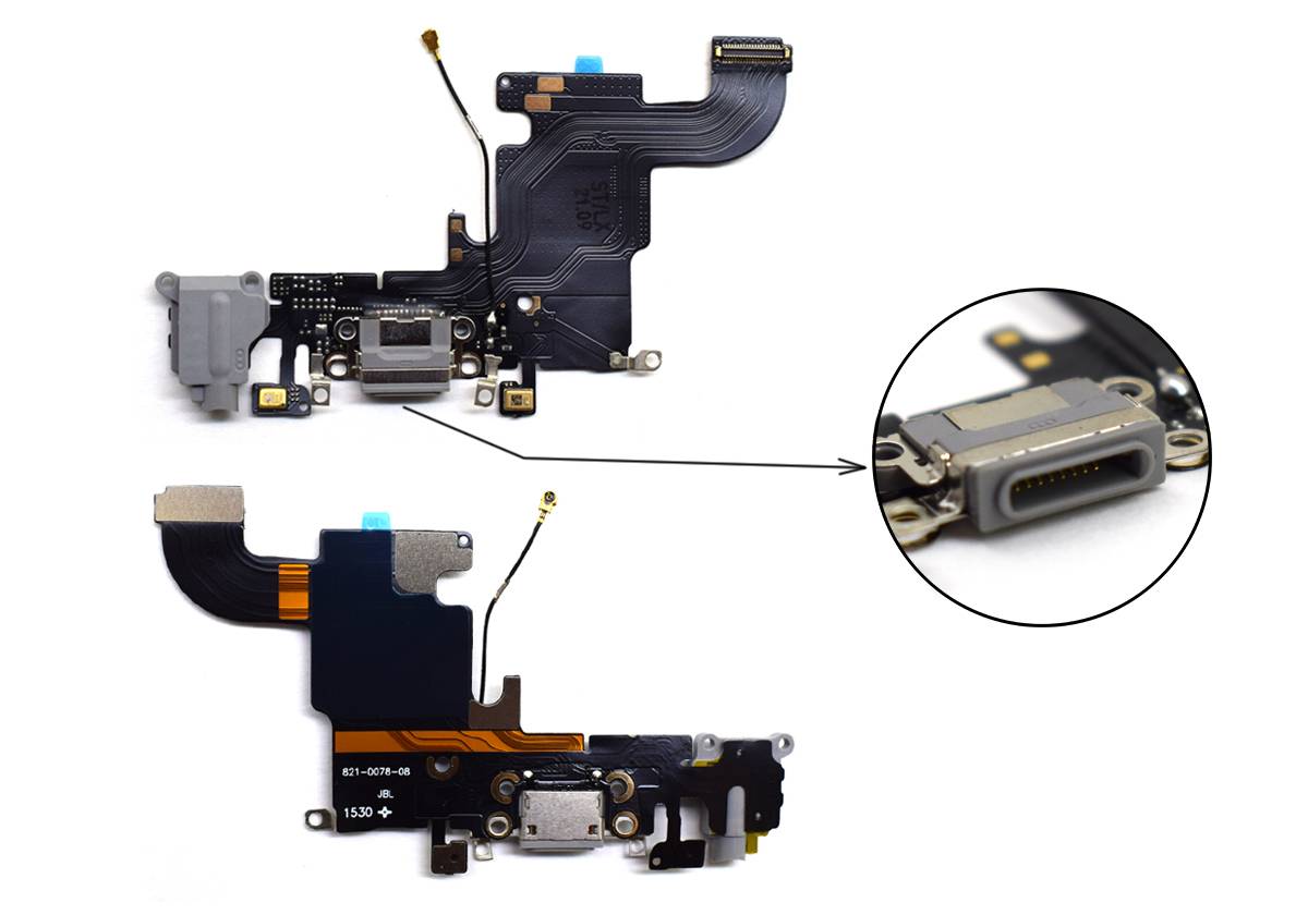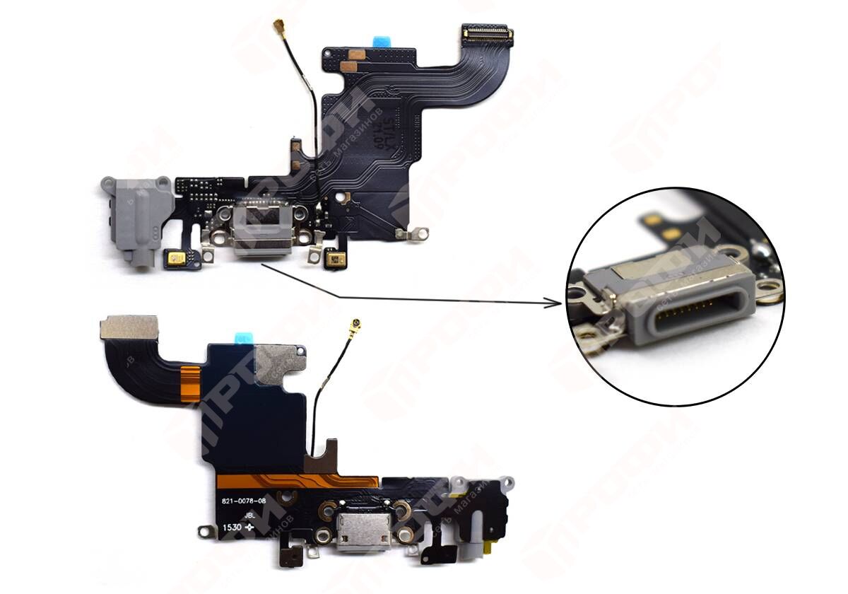 Шлейф Apple iPhone 6s (A1633) на системный разъем + микрофон + разъём гарнитуры - Серый