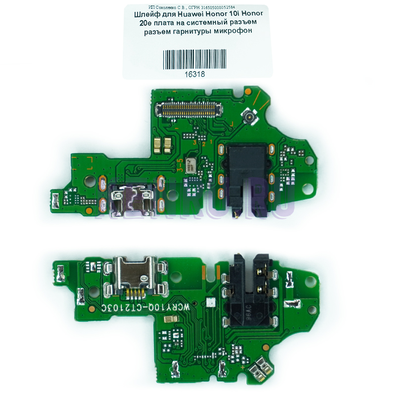 Шлейф Huawei Honor X7A (RKY-LX2)/Honor X7A Plus (RKY-LX1) на системный разъем + микрофон + разъём гарнитуры