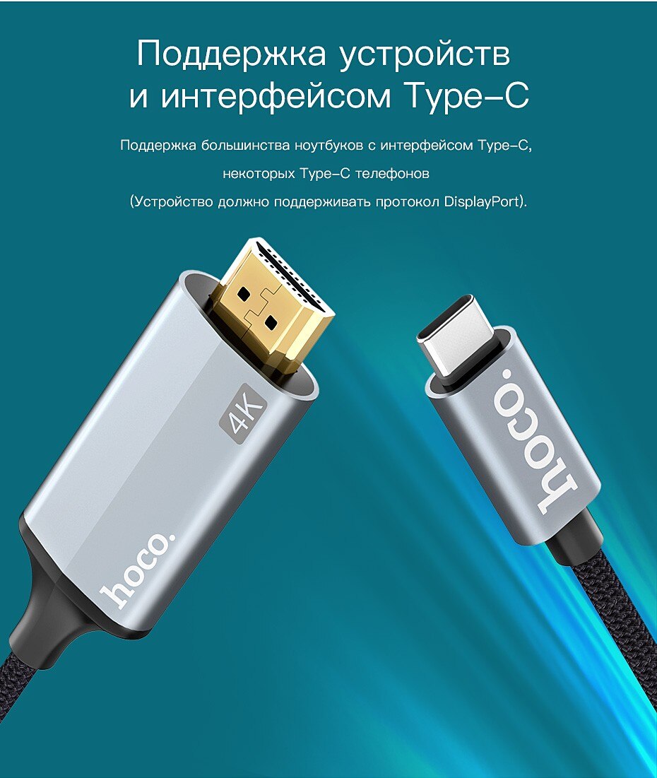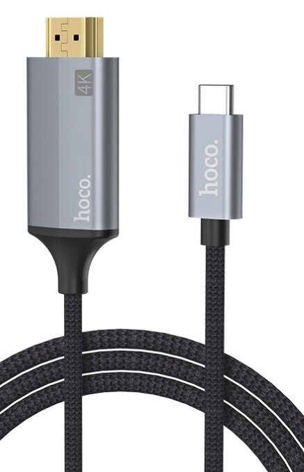 Кабель Type-C - HDMI Hoco UA16 (4K/30 Hz HD, оплетка нейлон, 2 м) Серый
