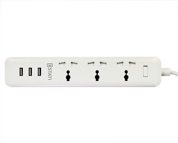 Сет фильтр 1.8м Kstati XRL 150 бел, 3 розетки, 3 USB